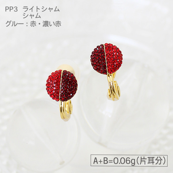 半立体のラウンドに仕切りができたプチイヤリング土台。側面にもスワロを配置できるので小さいながらも、ゴージャスな見た目に仕上がります。あらかじめ、土台に仕切りがあるので、バイカラーの配色も、綺麗かつお手軽に作りやすくなっています。