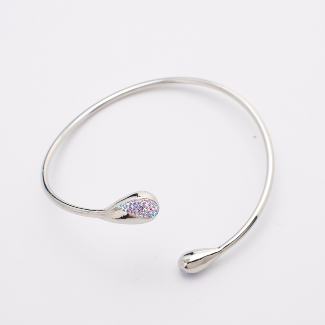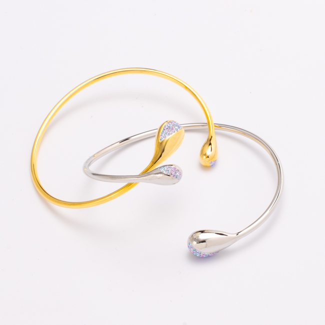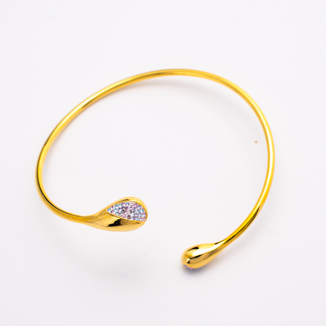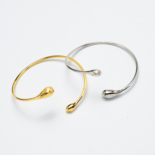 大小ふたつの雫型モチーフを先端に配した、カフタイプのバングル土台。
