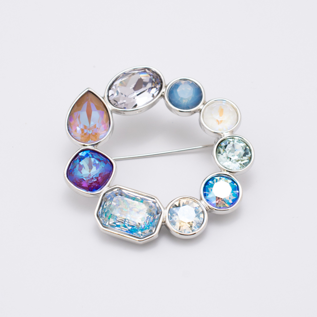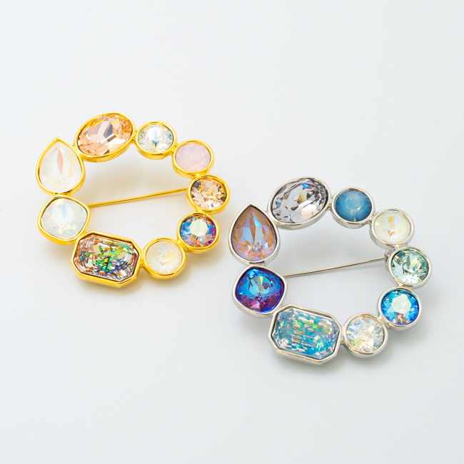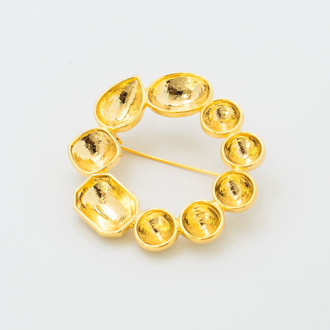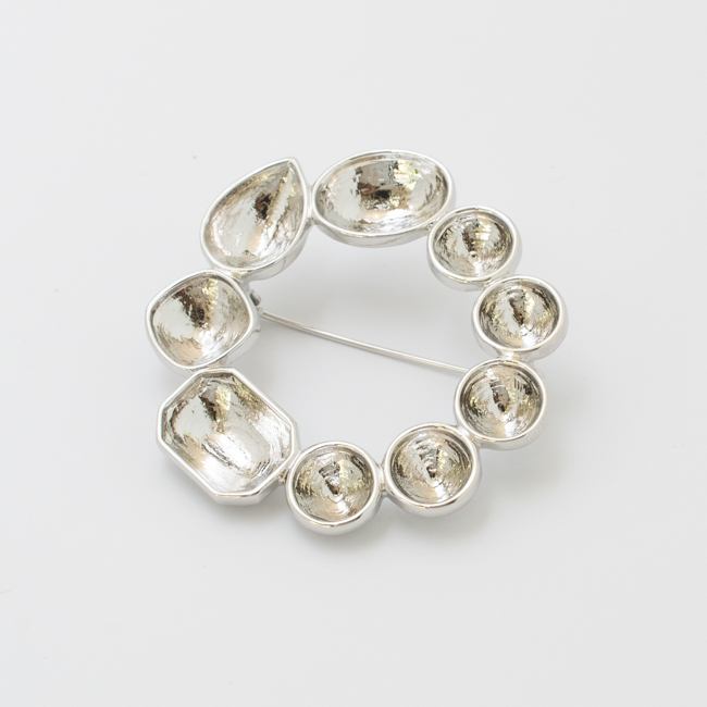 かたちの異なる石座をサークルで連ねた、動きのあるブローチ土台です。