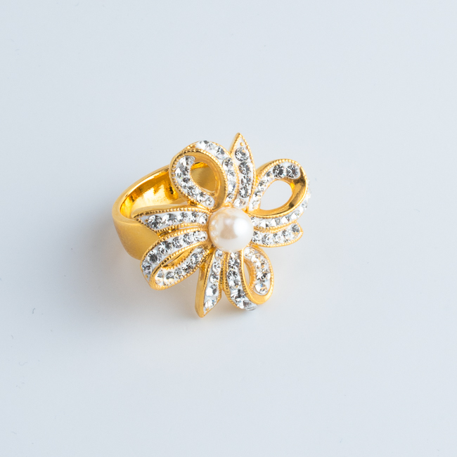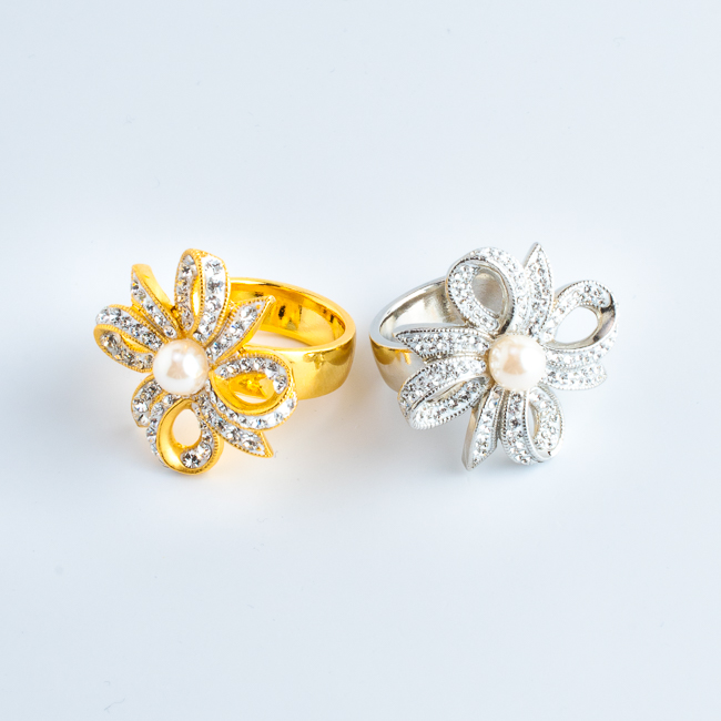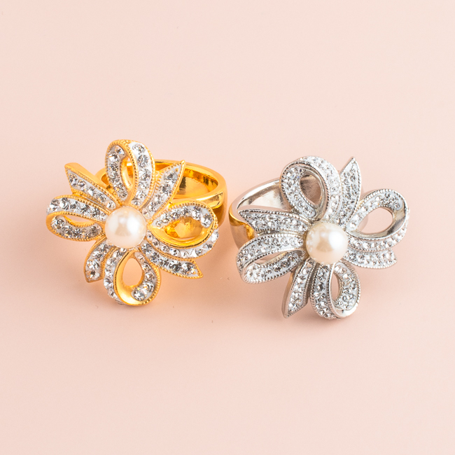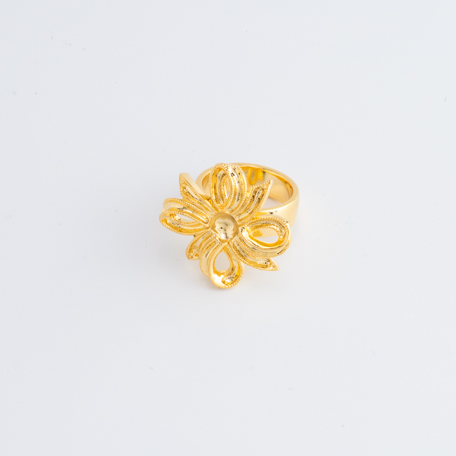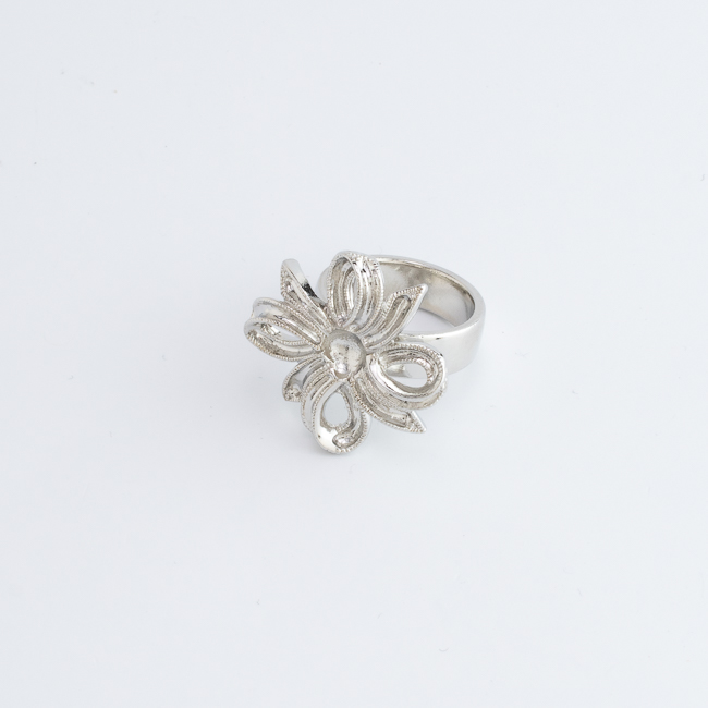 リボンが花のように広がる、華やかなロゼッタモチーフのリング土台です。